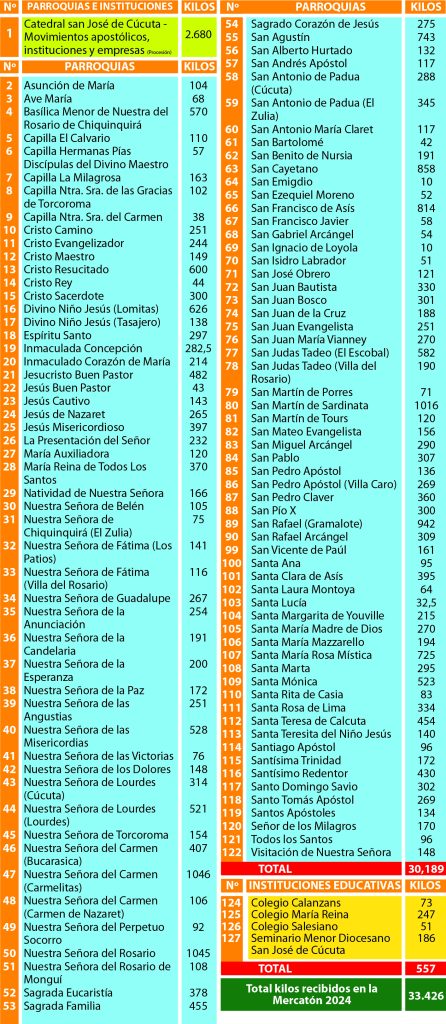 En el marco de la Celebración del Corpus Christi del presente año, se llevó a cabo la décimo quinta campaña de la Mercatón, realizada por la Diócesis de Cúcuta a través de la Fundación Banco de Alimentos “Monseñor Óscar Urbina Ortega”, con el fin de promover la generosidad de los fieles con las familias menos favorecidas y en condición de vulnerabilidad que hacen parte de las diferentes comunidades parroquiales de esta Iglesia Particular.