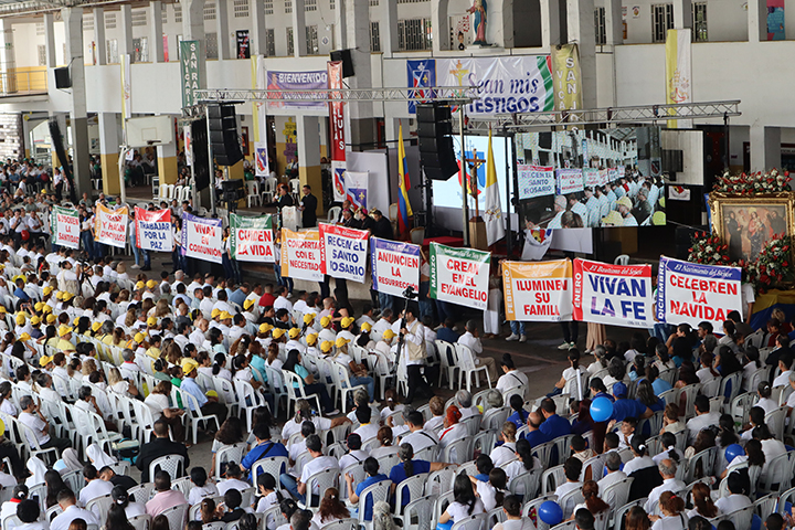 En el marco de la Visita Pastoral del Nuncio Apostólico, monseñor Paolo Rudelli, representante de Su Santidad el Papa Francisco, en Colombia, a la Diócesis de Cúcuta, inició su segundo día con la presencia que hizo en la Asamblea Diocesana 2024, en el coliseo del Colegio Salesiano. Este evento pastoral que comenzó a las 7:30 a.m., tenía como objetivo presentar el año pastoral 2025 y motivar a las delegaciones de todas las parroquias, a seguir caminando como discípulos del Señor. Monseñor José Libardo Garcés Monsalve, Obispo de la Diócesis de Cúcuta, dio apertura expresando la alegría de esta Iglesia Particular tras la visita de monseñor Paolo Rudelli, Nuncio Apostólico: “En presencia suya, reafirmamos, por tanto, nuestra profunda y sincera adhesión al sucesor del apóstol Pedro”, destacó monseñor José Libardo.