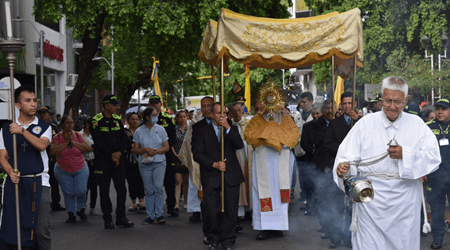 Fotos: Centro de Comunicaciones de la Diócesis de Cúcuta En la Diócesis de Cúcuta, la solemnidad del Cuerpo y la Sangre del Señor, se celebra de manera general cada jueves después de la solemnidad de la Santísima Trinidad, en la Catedral San José, y, el domingo, en cada una de…