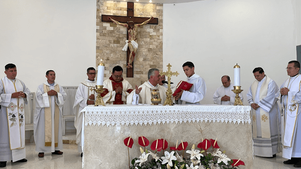 La celebración eucarística se llevó a cabo el sábado 24 de junio, presidida por Monseñor y concelebrada por los sacerdotes del decanato Nuestra Señora del Rosario, con la presencia de la comunidad parroquial, cuyo compromiso pastoral se refleja en la parroquia, animados por su párroco, el presbítero Eloy Jaimes Ureña.