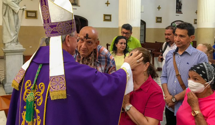 Antes de culminar la homilía, Monseñor Garcés insistió en tener muy presente que: “Todos somos pecadores, pero lo que se espera de un creyente es que no permanezca en situación de pecado por mucho tiempo”. Por último, bendijo la ceniza que se obtiene al quemar las palmas del Domingo de Ramos del año anterior, recordando que el paso por esta vida terrena es pasajero y que la vida eterna se encuentra en el cielo; y seguidamente impuso la ceniza en la frente de los fieles bautizados, diciendo: “Conviértete y cree en el Evangelio”.