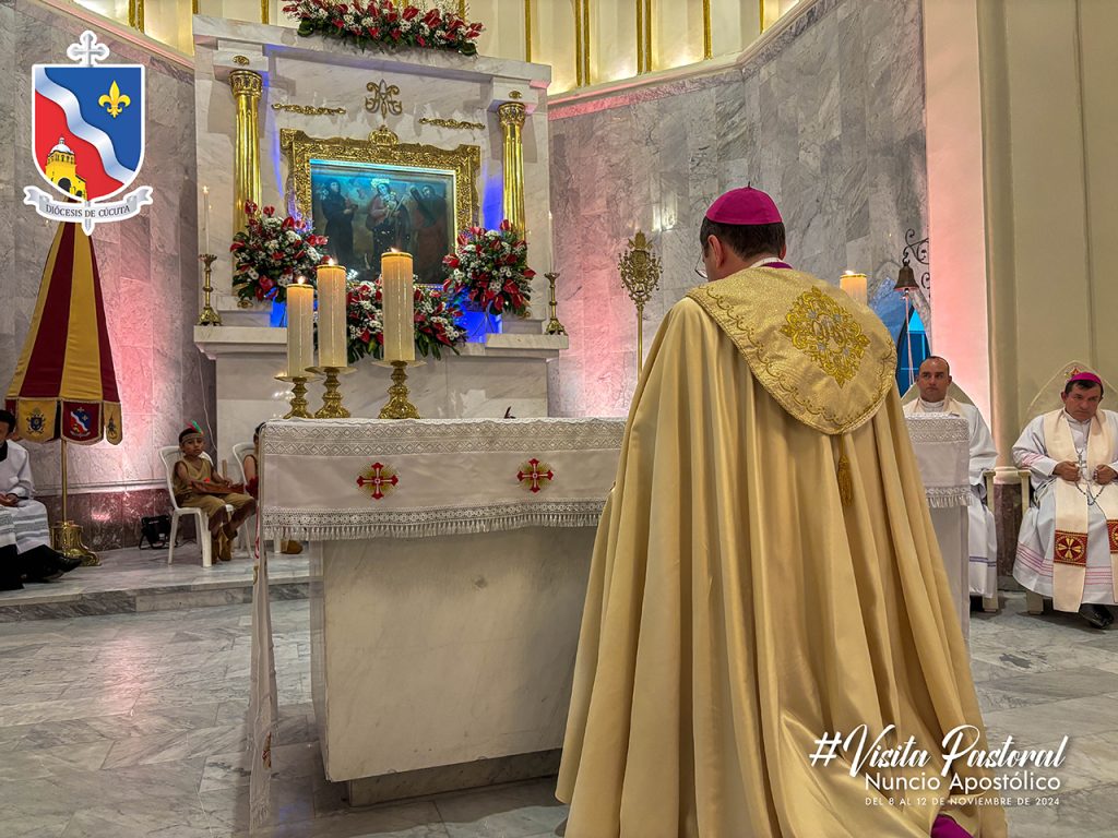 Hoy, 11 de noviembre de 2024, finalizó la Visita Pastoral del Nuncio Apostólico, monseñor Paolo Rudelli, representante de Su Santidad el Papa Francisco, en Colombia, a la Diócesis de Cúcuta. El día comenzó con la visita al Monasterio Ave María, de las Hermanas Clarisas, ubicado en el barrio Circunvalación, en la calle 17 con avenida 13, donde presidió la Eucaristía en compañía de monseñor José Libardo Garcés Monsalve, Obispo de la Diócesis de Cúcuta y en la que concelebraron algunos sacerdotes y participaron gran cantidad de fieles. Durante la homilía basado en las lecturas del día, mencionó que: “Las hermanas que viven aquí y los sacerdotes, somos testigos de cómo la fe mueve montañas, y cómo en la vida de nuestros hermanos y feligreses, la fe permite llevar pesos enormes a pesar de todas las dificultades”; además expresó que la fe “permite perdonar” con espíritu de “entrega y fidelidad”.