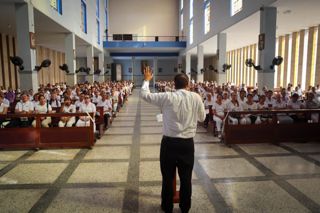 El pasado 5 de octubre, en la parroquia María Auxiliadora, se realizó el encuentro mensual de los ministros extraordinarios de la comunión de la Diócesis de Cúcuta. La reunión estuvo dirigida por el padre Clement Jaimes Sepúlveda, delegado de la comisión de liturgia, quien compartió sus reflexiones tras participar en el 53° Congreso Eucarístico Internacional, celebrado en Quito (Ecuador), del 8 al 15 de septiembre. El encuentro tuvo como base el documento “Fraternidad para sanar el mundo”.