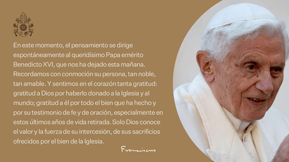 Fallecimiento de Benedicto XVI: “Solo Dios conoce el valor y la fuerza de su intercesión, de sus sacrificios ofrecidos por el bien de la Iglesia”