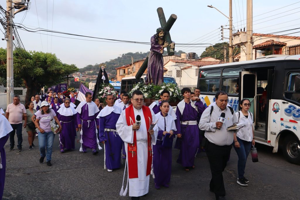 Como ya es tradición cada Lunes Santo, la hermandad de Nazarenos de las diferentes parroquias de la ciudad, se congregaron para vivir el Viacrucis de esta hermandad, a partir de las 6:00 a.m. El recorrido inició en la Parroquia san Rafael Arcángel y durante el paso por cada estación ubicada en las diferentes calles de la ciudad (avenida 1 y 9, calles 10 y 9), se meditó cada pasaje del evangelio que narra la Pasión de Jesucristo, para reflexionar y orar por quienes a su paso se unían con este ejercicio de piedad, que también tuvo en cuenta a los distintos comercios, clínicas, hogares y demás personas, que prepararon las estaciones.