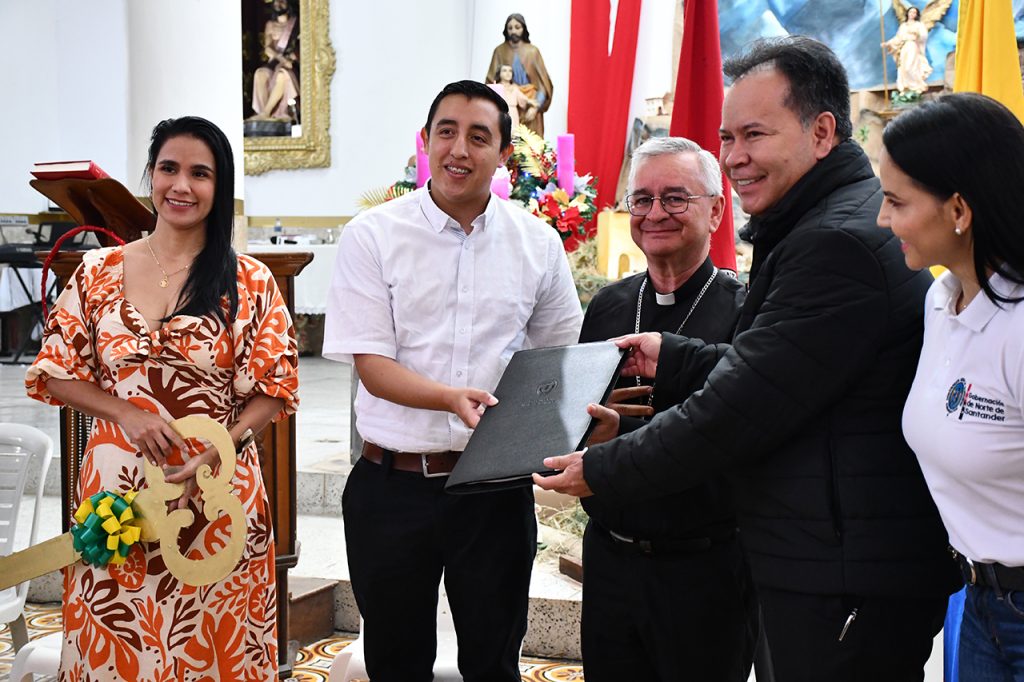 Al término de la Santa Misa, se desarrolló el protocolo de entrega de las escrituras en el que estuvo acompañado también por el vicario general de esta Iglesia Particular, presbítero William Aguilar Vargas y párroco de san Francisco de Asís; el presbítero Elver Rojas Herrera, vicario para los asuntos económicos y rector de la Basílica Menor Nuestra Señora del Rosario de Chiquinquirá; el presbítero Samuel García Botello, vicario de la vicaría rural de la Diócesis de Cúcuta y párroco de San Rafael de Gramalote; el presbítero Óscar Alexis Pérez Morales, párroco de Nuestra Señora de Lourdes; y el presbítero Diego Eduardo Fonseca Pineda, director del Centro de Comunicaciones Diocesano.