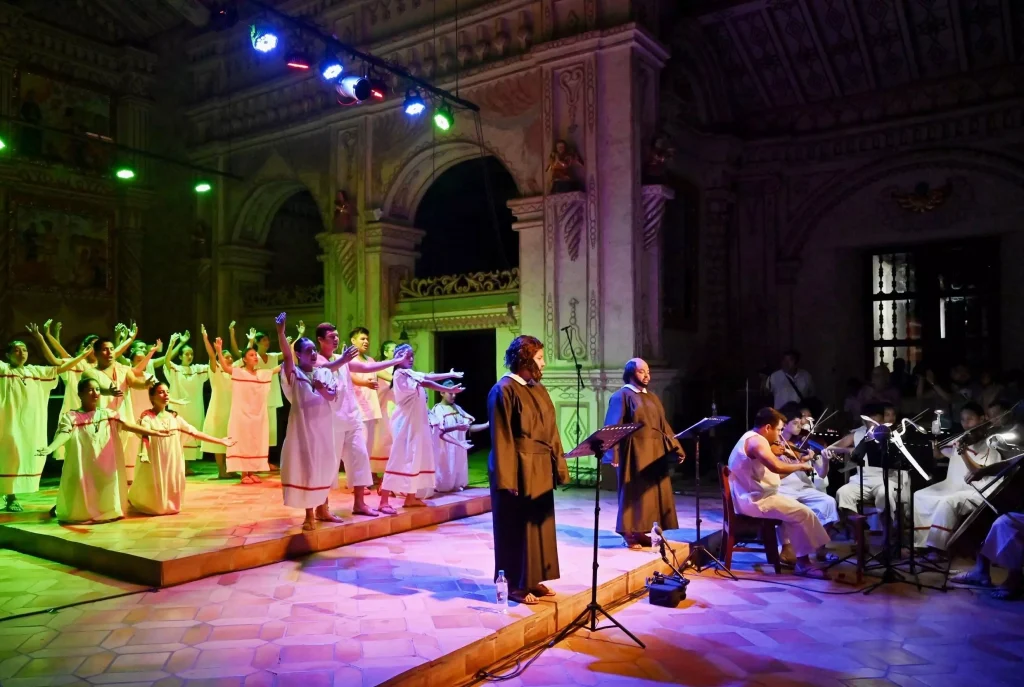 La orquesta sinfónica de San Javier, un pueblo en el departamento de Santa Cruz con casi 19.000 habitantes, tocó por primera vez una obra descubierta en los años setenta. En frente del altar de la iglesia de San Javier, Yhorgina Algarañaz y Carla Pereyra, de 18 y 36 años, representaron un diálogo en bésiro entre San Francisco y San Ignacio.