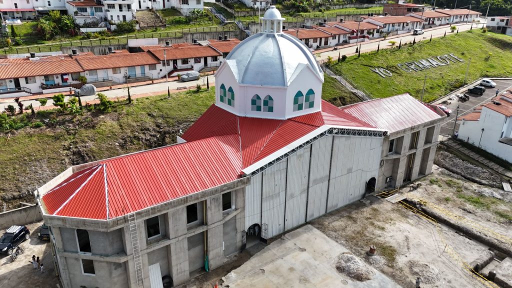 La comunidad, liderada por sus sacerdotes, ha mantenido viva la esperanza y el esfuerzo conjunto, lo que ha permitido avanzar en la construcción del nuevo templo en el renovado casco urbano de Gramalote, que actualmente cuenta con la cúpula central situada sobre el altar, y las capillas laterales.