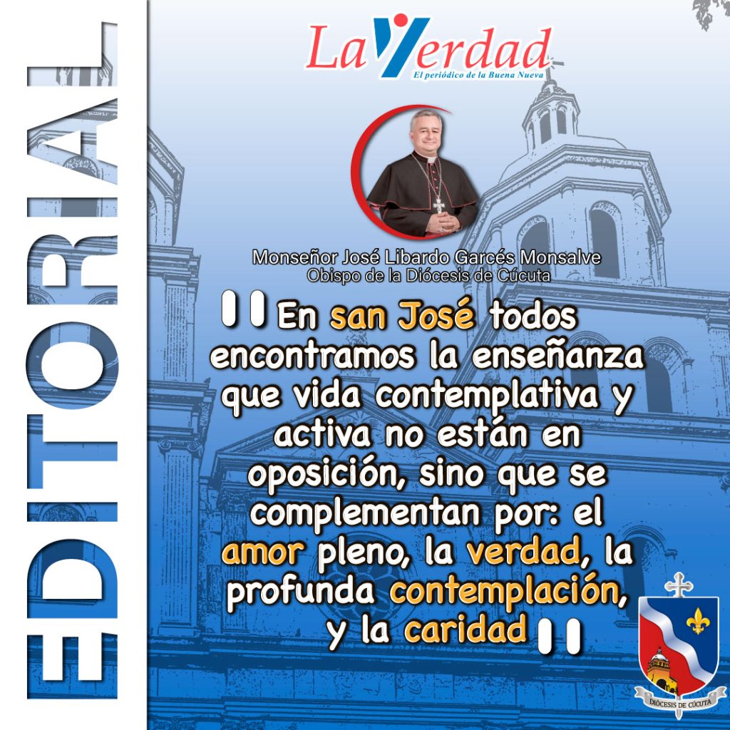 En san José todos encontramos la enseñanza que vida contemplativa y activa no están en oposición, sino que se complementan por: el amor pleno, la verdad, la profunda contemplación y por la caridad, que se obtiene por el trabajo diario, en el servicio a los hermanos sin esperar nada a cambio. Entregando la vida por todos, como lo hizo también la Santísima Virgen María, al dar el sí a la voluntad de Dios cuando recibió el anuncio del ángel, que iba a ser la madre del Salvador.